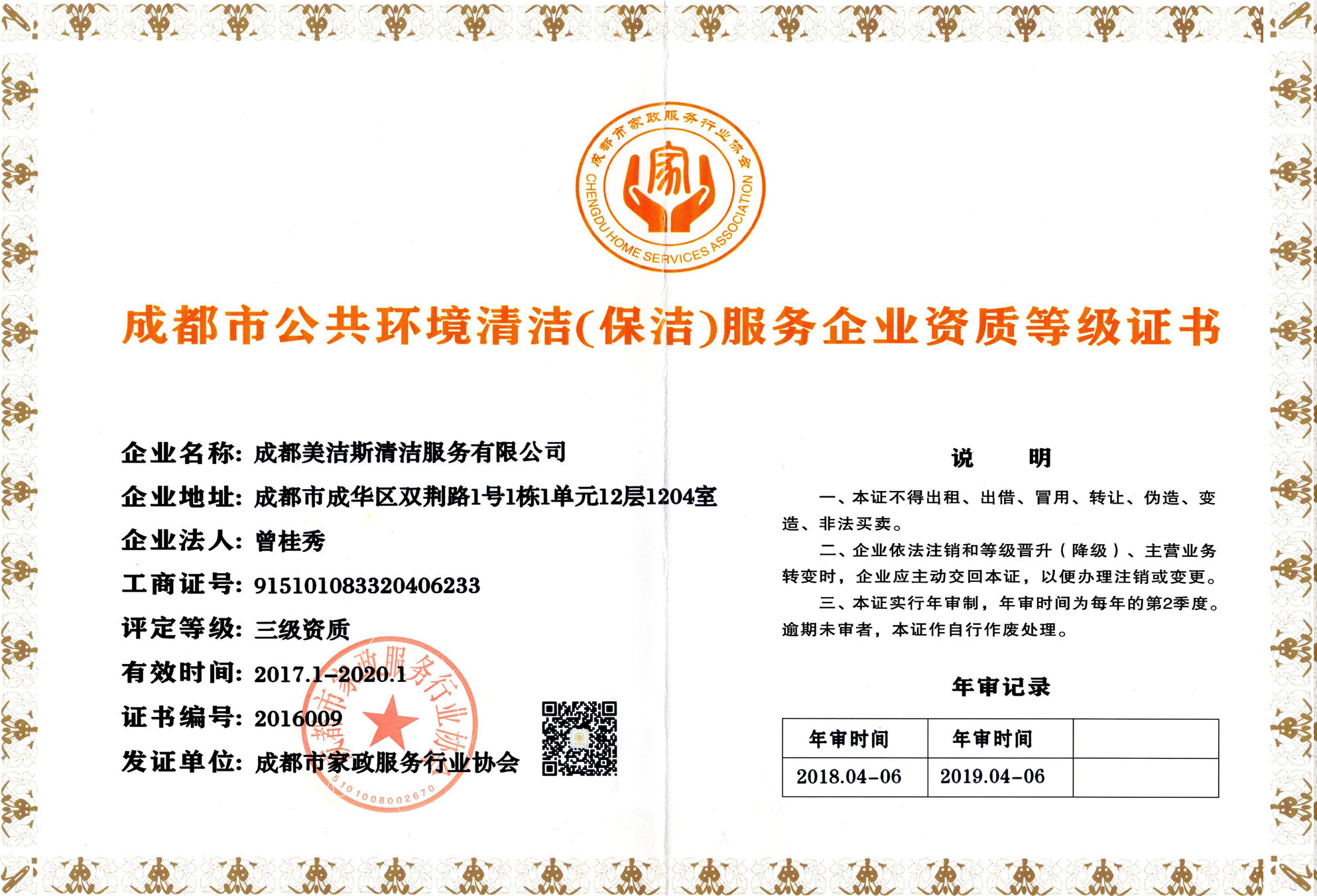 美潔斯公司三級資質證書封面