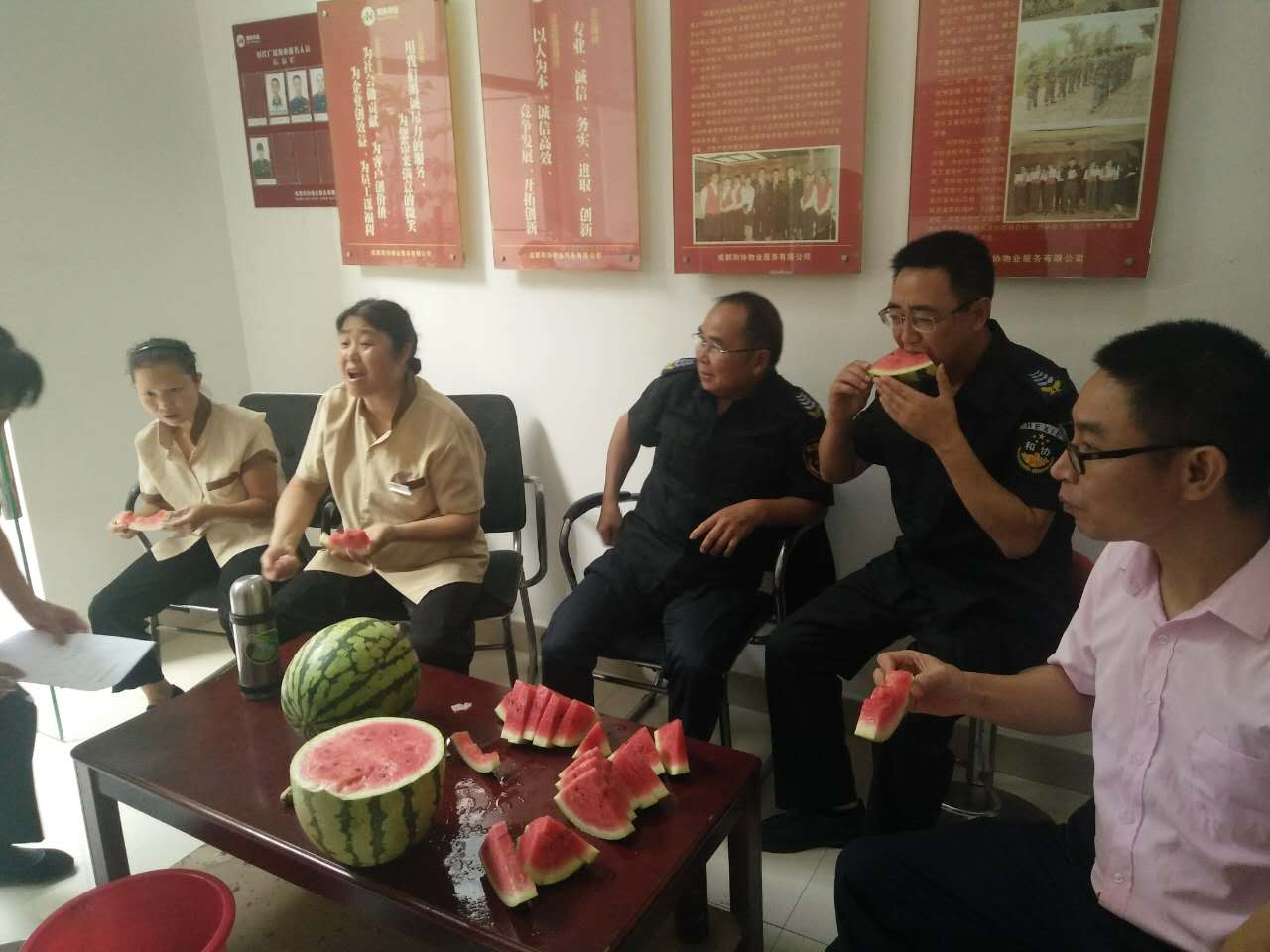 2017月8月1日,正是太陽最毒辣的時候,公司領導李總、楊總親自帶頭,逐一為每個項目的員工呈送西瓜、藿香正氣液等防暑降溫物品,并囑咐大家,一定要注意勞逸結合,愛惜身體,防止中暑。公司的關愛,讓員工們仿佛都忘記了高溫酷暑,內心深處感到絲絲清涼,這清涼同時也潤入了員工心田。