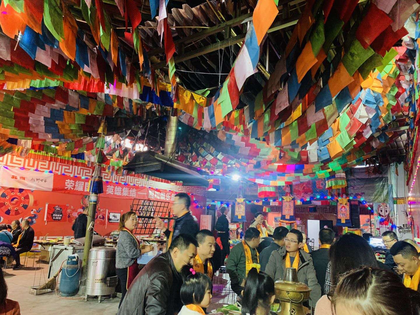 品嘗當地的藏式土火鍋、一邊觀看歌舞表演、體驗篝火晚會。