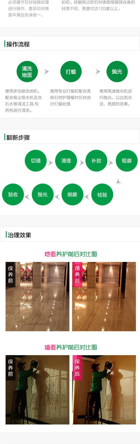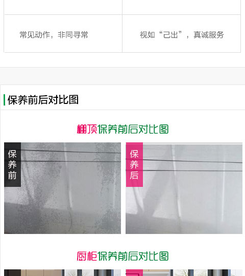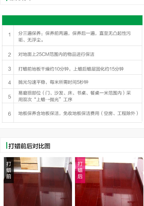 保潔三遍(保養前兩遍,保養后一遍),直至無凸起性污垢、無浮塵;地面以上25cm范圍內物品保潔。